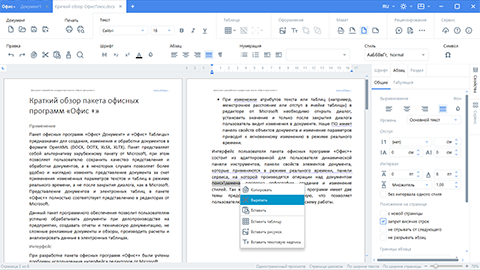 - Поддержка форматов DOCX, DOTX, RTF, ODT, OTT, DOC, DOT